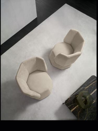 Dëse **luxuriéisen Einsëtzer** ass net nëmme funktionell, mee och e stilvollen Accessoire, déi sech perfekt fir all Wunnraum eegent. D'Neutralitéit vun der **Faarf, wéi ofgebilt**, erlaabt et de Sesselle sech nahtlos un all bestehend Dekor unzepassen, wärend duerch den héichwäertegen Stoff e räichen Touch vu Raffinesséit derbäi kommt. Ideal fir eng liese Frëndlechkeet an der Eck oder als elegant Element an engem moderne Büro ze placéieren, dësen Sesselle weist seng **Villsäitegkeet** an all Aspekt. Et ass den idealt Miwwelstéck fir déi, déi Komfort net op Käschte vum Stil wëllen maachen. Loosst entfale se sech vollkommen am Gedanke vun engem feinen a gemittleche **Liewensraim,** dat d'Haus zu engem zousätzlechen Haff vun Entspanung mécht.
