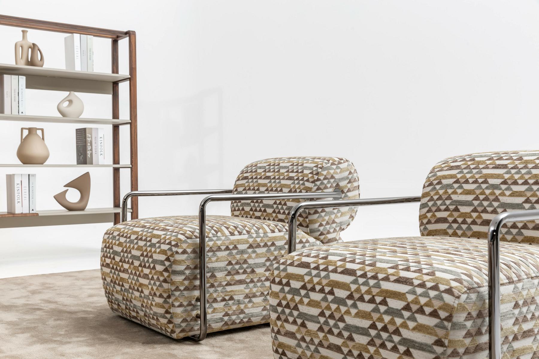 Dëst beandrockend Miwwelstéck ass net nëmme fir d'Ästhetik; et ass perfekt fir eng Vielfalt vu Situatiounen. Ideal fir d'Relaxatiounszone vun Ärem Wunnzëmmer, kann et als Leseeck oder fir eng gemittlech Tasse Kaffi genotzt ginn. D'Struktur aus héichwäertegem Holz garantéiert en dauerhaften a stabilen Sëtz, während dat luxuriéis Textilstoff bequem a generéis gepolstert ass, fir Iech dee beschtméiglechsten Komfort ze bidden. Perfekt fir eenzel Persounen déi eng roueg Plaz sichen, ass de Sessel Design Modern Wunnzëmmer e Must-Have fir jiddereen, deen no engem Touch vun Luxus an hirem Doheem sicht.