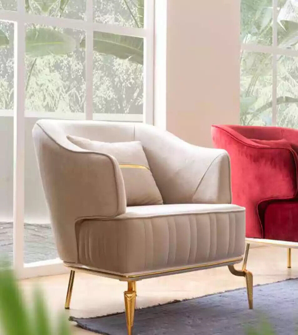 Den 'Wunnzëmmer Sëtzmiwwel Dréissëtz 1 Sëtzplaz Modern roude Design Textil' ass déi perfekt Ergänzung fir all modern Wunnzëmmer. Mat senge Moossen vun ca. 70 x 100 x 80 cm bitt en genuch Komfort a Stil fir all Interieur. De Sëtz ass op enger Héicht vun ca. 44 cm plazéiert, wat e gemittlecht Sëtzerlebnis garantéiert. Des Weidere gëtt et eng Sëtzdéift vun ca. 56 cm, déi d'Entspanung fördert, an déi ideal Positioun fir déi lescht Minutte vun engem laangen Dag ubitt. De Miwwel ass aus héichwäertegem Holz, Textil, a Metall hiergestallt, wat seng Haltbarkeet an Zouverlässegkeet ervirhieft. Seng raffinéiert roude Faarf mécht en zu engem Optrëttstéck, dat an all Raum erausstécht.