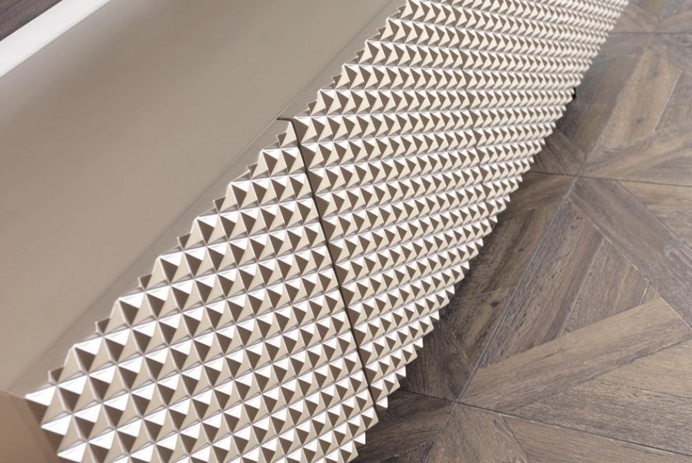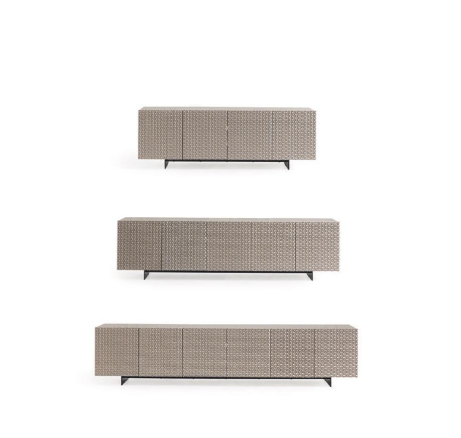 Geskeppt fir Mehrzweeknotzung, kann dës **Paneel Verkleedung** als zentral Punkt vum Raum funktionnéieren oder als Harmonnergänzungsstéck benotzt ginn. Dëse Miwwelstéck bidd **zouvoll Funktionalitéit** - Dir kënnt Accessoiren wéi Boxen oder Spillkonsolen op et installéieren oder integréiert Erasmesschäiner benotze fir Är elektronesch Geräter elegant ze verstoppen. Seng natierlech Faarfschema, wéi op der Foto ofgebilt, mécht et einfach fir dës Mëblattioun a verschidden Interieuranriichtungen z'integréieren, vun klassesch bis minimalistesch Stiler. Dëst Stéck bidd net nëmmen praktesch Notzung, mä setzt e bemerkenswerten Akzent an all Wunnzëmmer.