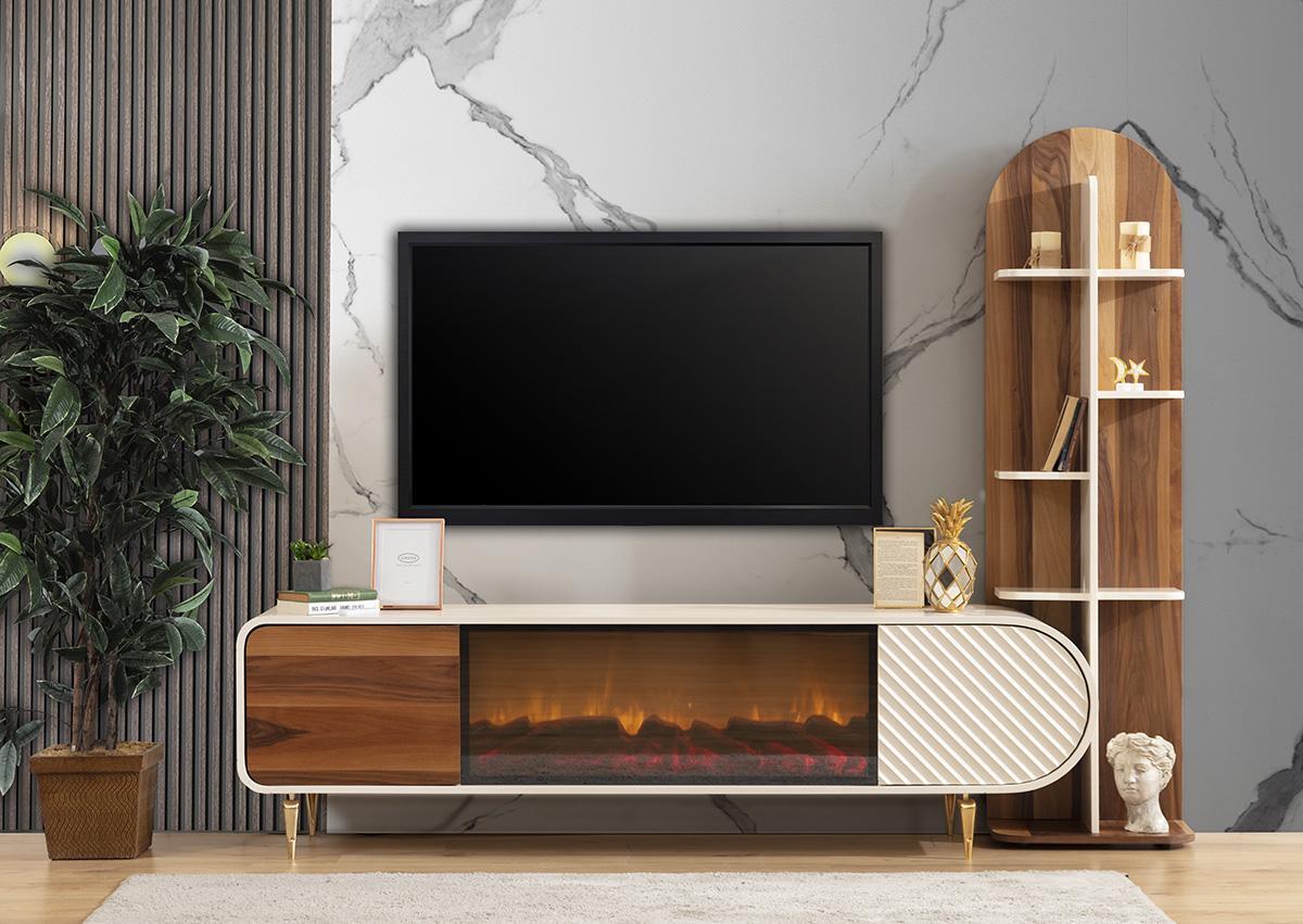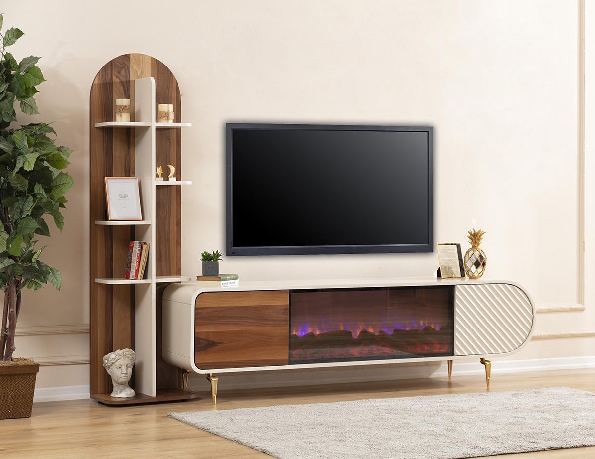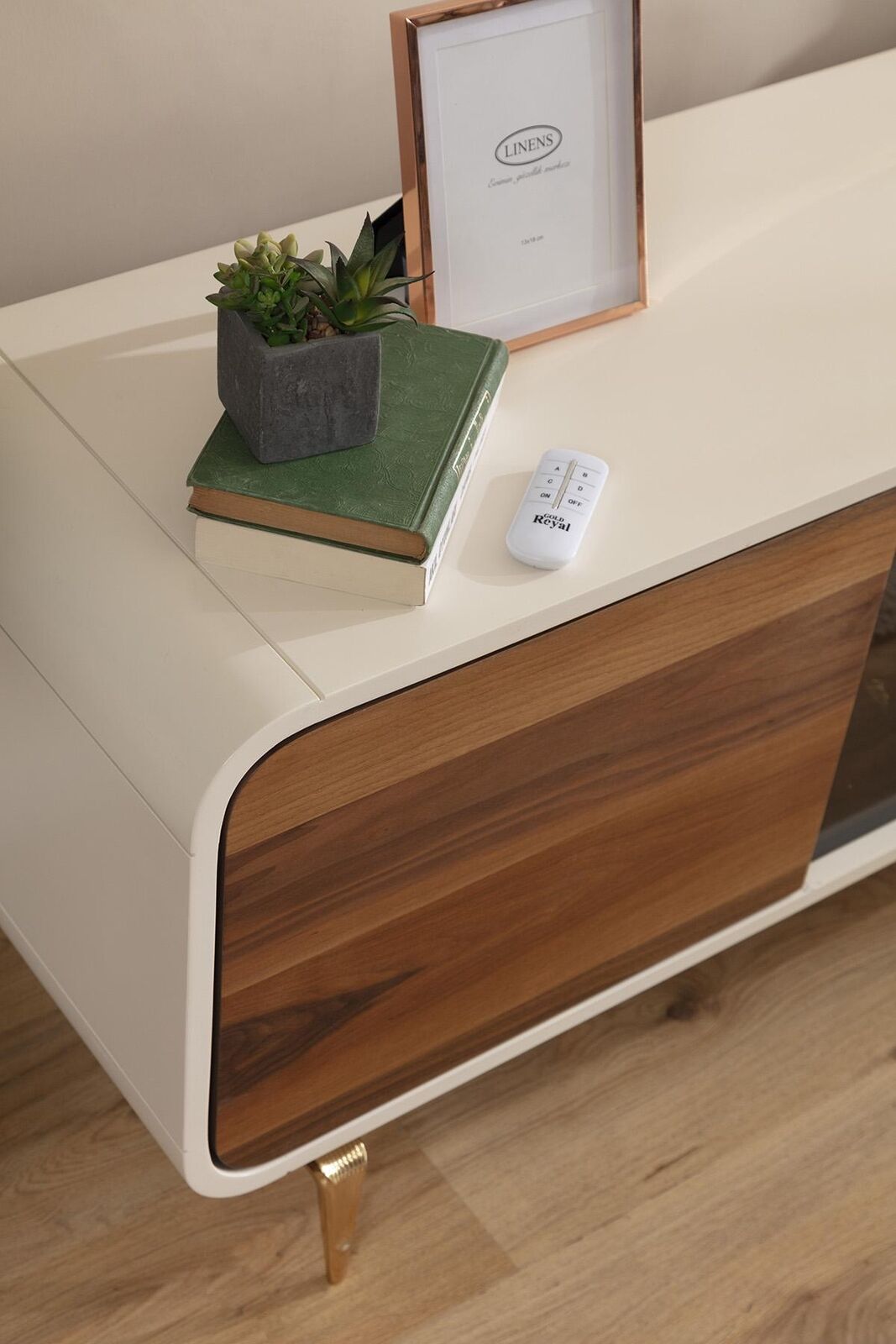 De 'TV Stänner RTV Lowboard Regaler' ass perfekt fir all déi, déi eng funktionell an ästhetesch Zousatz zu hirem Interieur sichen. Dësen Dësch kann als zentrale Punkt am Wunnzëmmer benotzt ginn, wou en net nëmmen Ären Fernseh stëtzt, mee och als elegant Konsol funktionéiere kann. Dank sengem bredem Design bitt et genuch Plaz fir Décorationsgegestänn, Bicher oder aner Elektronik, wat et zu enger formidabeler Léisung fir d'Organisatioun an d'Verbesserung vun Ärem Raum mécht. Schafe Se eng harmonesch Atmosphär a genéisst d'Komfort an d'Prakteschkeet déi dëse Stänner Iech bréngt.