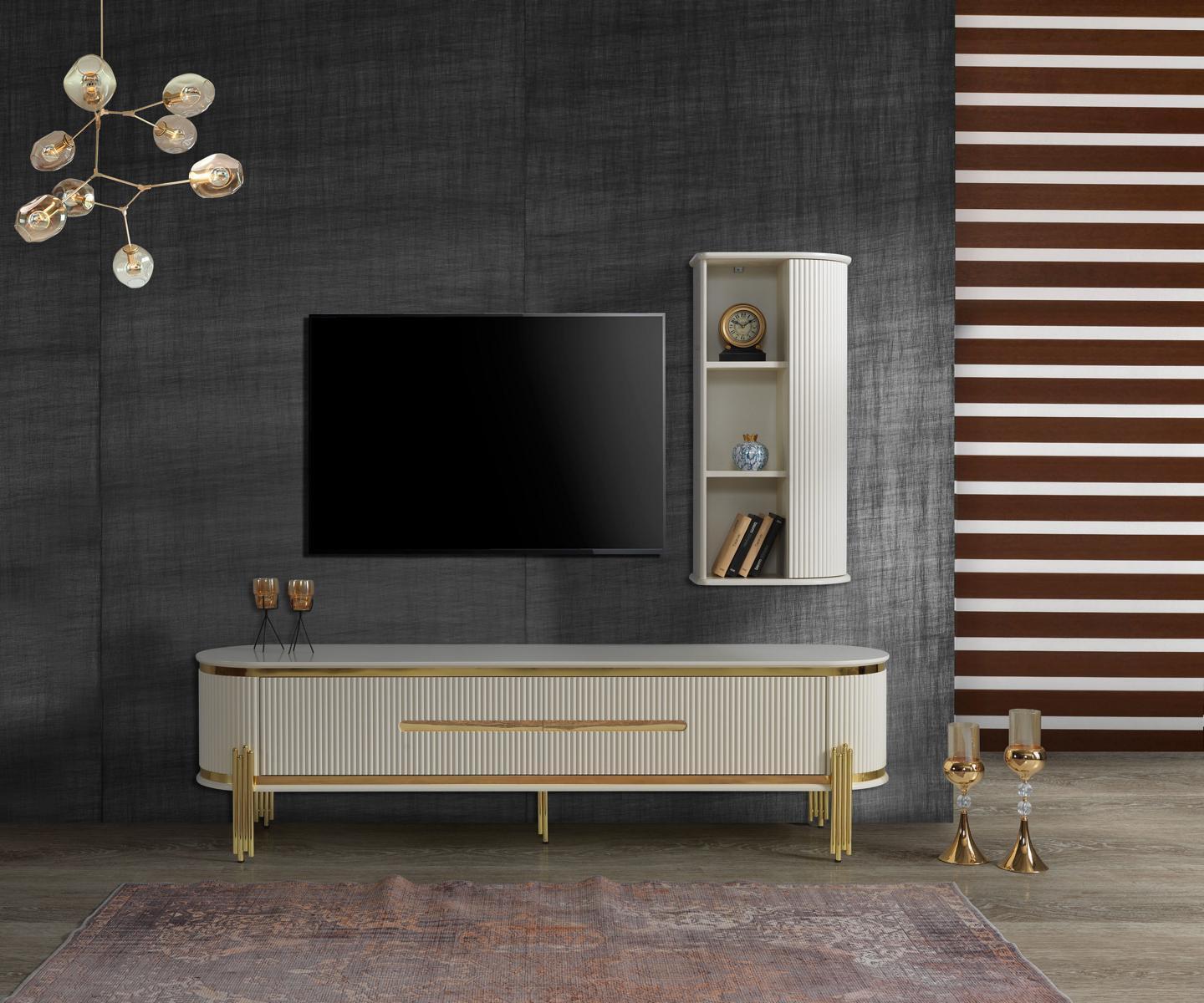TV-Stänner RTV Lowboard Wäiss Dësch Holz Modern Wunnzëmmer Sideboard