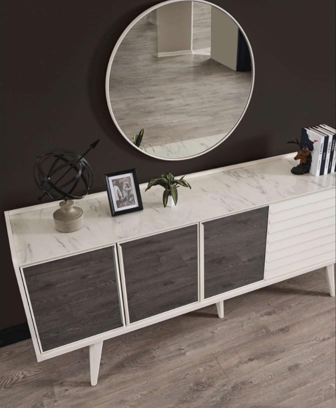 Wäisst Sideboard Luxusäregen Rondspigel Designer Holzmiwwelen 2-teil Set Neit