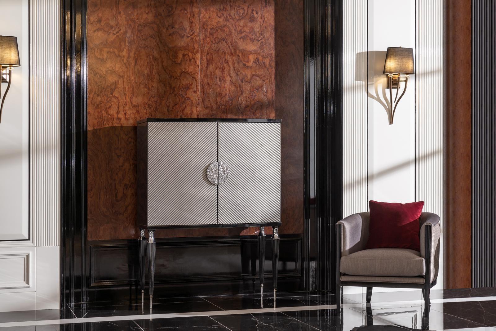 De Garnitur Fauteuil Barschaf ass perfekt fir déi, déi hir Fräizäit am Wunnzëmmer geschécklech genéissen wëllen an dobäi en eenzegaartegt Ambiance schafen. Stellt Iech vir, e Buch an der eenzegaarteger Atmosphär vun ärem Sëtzzëmmer ze liesen, ënnerstëtzt vum Komfort vum Fauteuil, wärend dir ären eegene Bar huet fir äert Liiblingsgedrénks ze servéieren. Gläichzäiteg ass dëse Set och ideal fir Gäscht ze empfänken, well de Barschaf prompt en Treffpunkt suergt, a séier Zougang zu drénken erméiglecht. Dëse Set transforméiert net nëmmen d'Erscheinung vun Ärem Wunnraum, mee verbessert och de Fonctionnement, wat et zu enger wäertvoller Investitioun fir all Haushalt mécht.