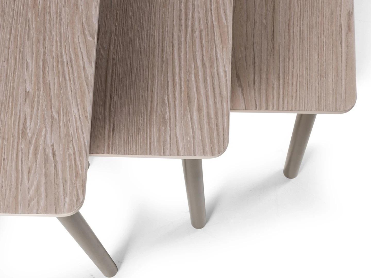 Dëse funktionelle Beistelltësch kann op verschidde Manéieren an Ärem Heem benotzt ginn. Benotzt en als stilvolle Couchdësch an Ärem Wunnzëmmer fir Bicher, Lëften oder Äert Liiblingskaffisgeschir ofzestellen. An engem Schlofzëmmer kann en als elegant Nattdësch déngen, perfekt fir eng Lampe an Ären Nuetsliesbuch. Egal wou en plazéiert gëtt, dësen Dësch bréngt definitiv eng modern a warm Atmosphär un all Raum, wärend et gläichzäiteg funktional Bettlandscapen an Ärem Interieur schaaft. Maacht Är Frënn an d'Famill e bëssen nodenke mat dësem chic Stéck vun 'Grau Design Miwwelen'.