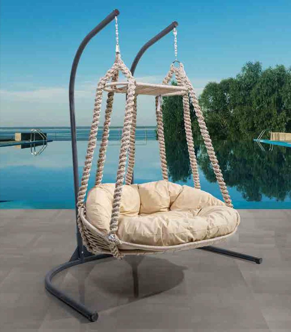 Dank senger stabiler Konstruktioun an zäitlosen Design ass dëse Hänkeschwong ideal fir eng Vielfalt vun Ëmfeld, sief et am Gaart, op der Terrass oder och banne beim Feieruewen. Stel Iech vir, wéi Dir op sonnege Mëtten oder an enger waarmer Owendlucht an dësem Fotel rost. De Materialmix aus Edelstahl a fein gewieftem Textil mécht dës Méiglechkeet net nëmme komfortabel, mä och einfach ze pflegen an haltbar géint Wiederinflëss. Egal ob fir déi kleng Auszäit am Alldag oder dessinéiert Entspanungsmomenter mat engem Léifsten, dëst ass de perfekte Choix fir all eenzel, déi e bësse Luxus an hirem Outdoor-Beräich wënschen.