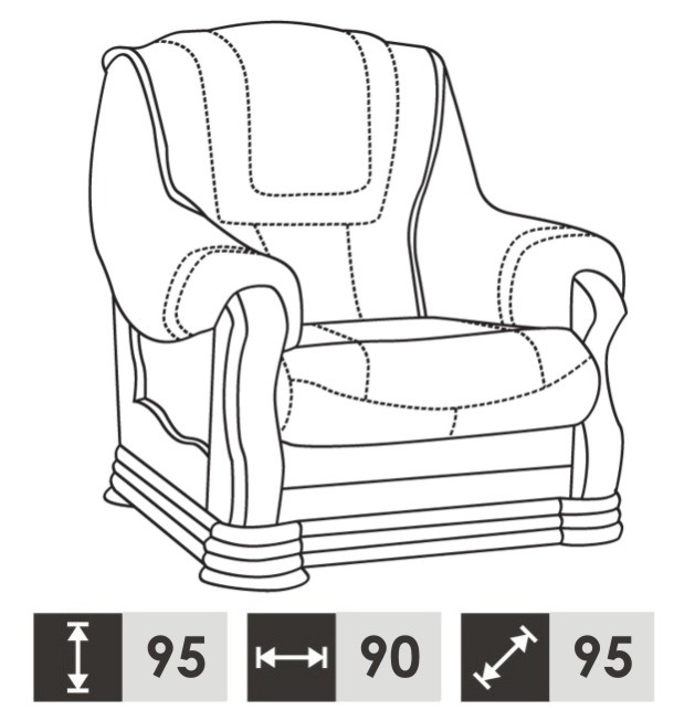 1 Sëtzer:    ca. 90 x 95 x 95 cm