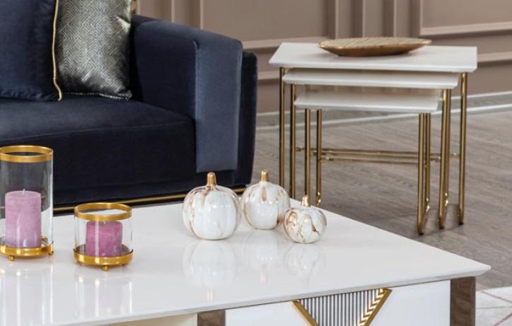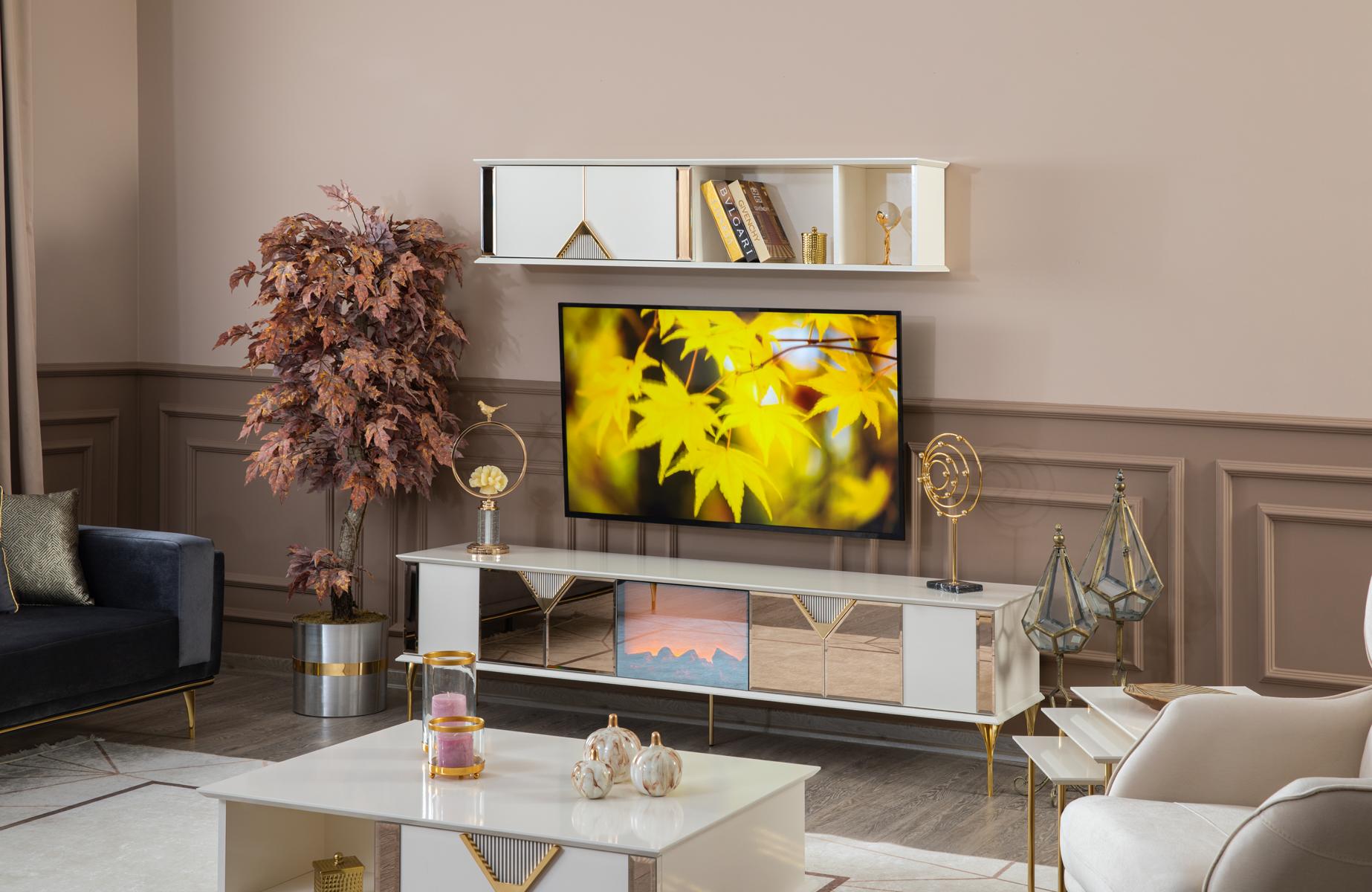 Dëst Set ass ideal fir déi, déi eng harmonesch Ambiance sichen a wëlle Luxus mat Funktionalitéit kombinéieren. D'Dréi-Sëtzer Sofagarnitur ass perfekt, fir Frënn oder d'Famill ze ënnerhalen, während de TV-Stänner Är Ënnerhalungszentrum stilvoll hëlt. De breede Dësch an den zousätzlechen Niewentisch goufen entwéckelt, fir Plaz fir Snacks, Getrénker oder Magazine ze bidden, a maachen se ideal fir Owender oder entspaanten Nomëtteger. Gitt Ärem Wunnzëmmer mat der Sofagarnitur 31 Set déi perfekt Mëschung aus Komfort a Stiler, déi jiddereen beneide wäert.