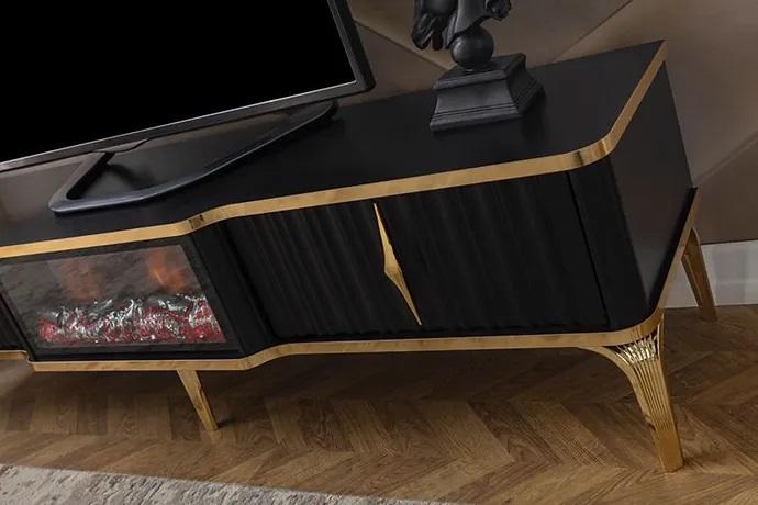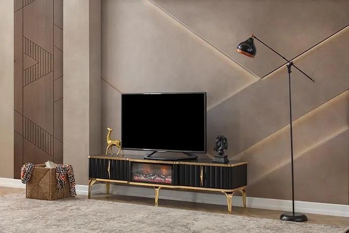 Schwaarzen TV-Schaf, imitéierten Cheminée, Wunnzëmmertmübel