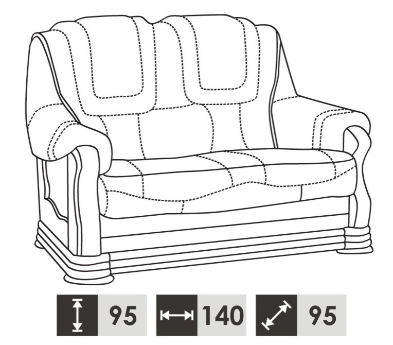 2 Sëtzer: 140 x 95 x 95 cm.