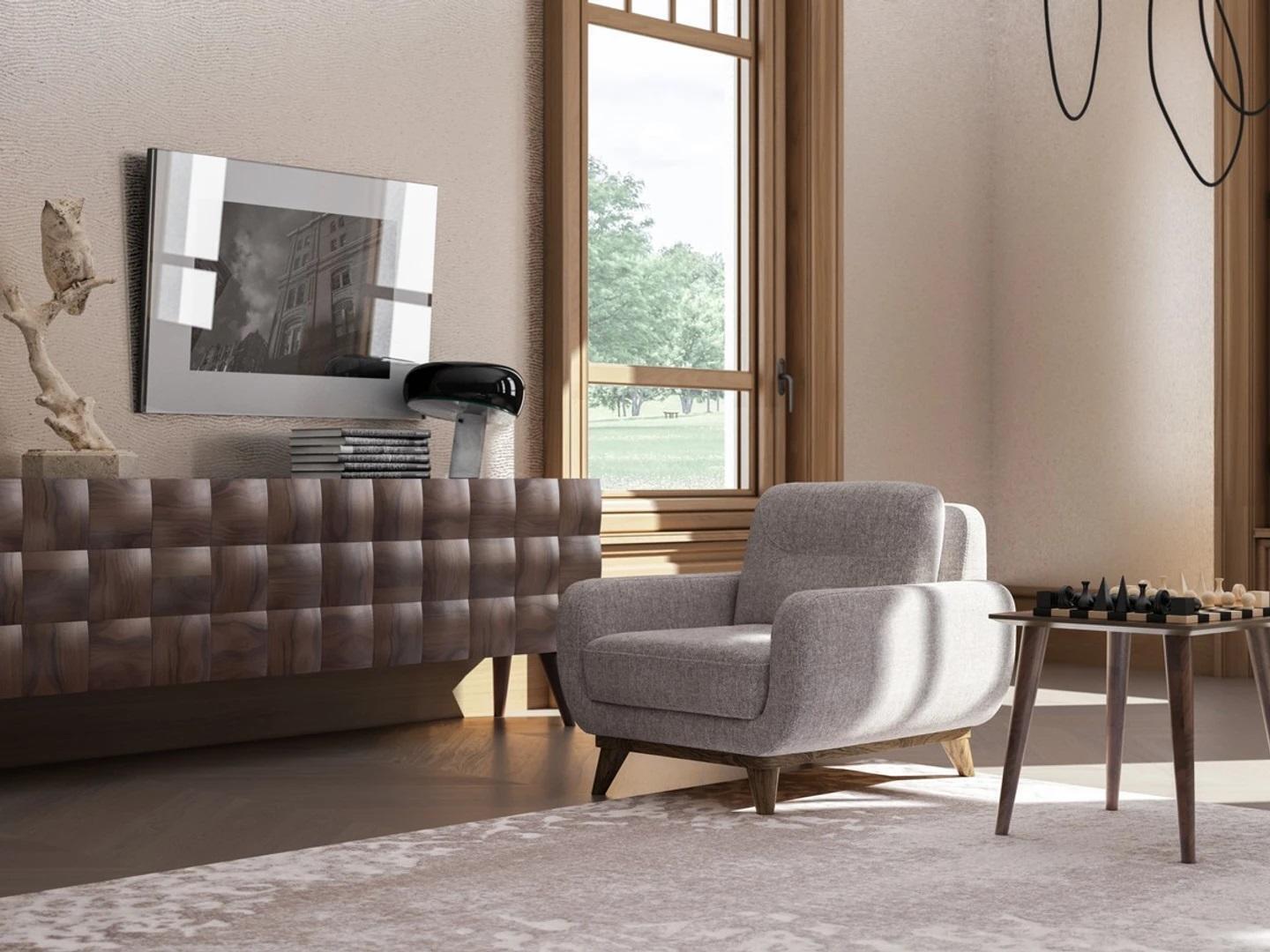 Luxus Drau Sessel Wunnzëmmer Polstermöbel Polster Stoff Textil Ariichtung Nei