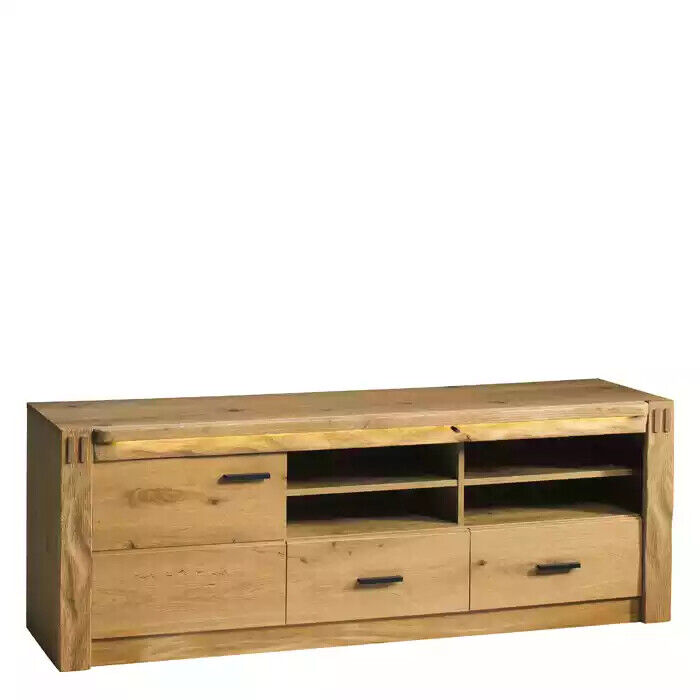 Dank senger vielseitiger Funktionalitéit kann dësen 'RTV Kommode' als Basis fir Ären TV an Audioanlagen dénge, awer och als Sideboard oder Lowboard zu engem entspaanten Ambiance bäidroen. Ob an der Stuff, am Schlofzëmmer oder an der Spillsäll, dëst Miwwelstéck passt zu all Raum a bidd net nëmmen praktesch Léisunge mee och eng ästhetesch Approche. D'Kombinatioun vu massiver Holzstruktur a qualitativ MDF Elementer mécht dëst Miwwelstéck robust an haltbar, ideal fir déi, déi op laangfristeg Wäertleeë wëllen. Sief et fir perséinlech Notzung oder als Gespréichsstéck bei Gäscht, dësen Kommode erhéicht de Charme vun all Interieur.