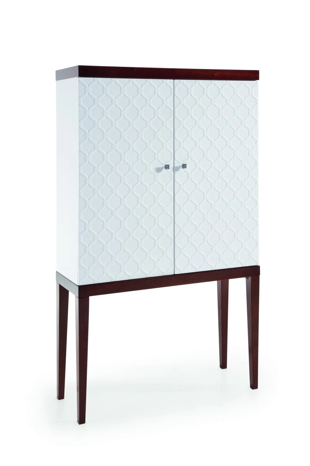 Dës 'Schaf Bar' ass **besonnesch flexibel an hirem Gebrauch** an ass perfekt gëeegent fir als Vitrin oder Regal a verschiddenen Raimlechkeeten ze déngen. Zum Beispill kann se am Wunnzëmmer benotzt ginn, fir Wäin, Glasuren oder aner sammelbar Objekter ze weisen. **D'Loge kënnen och als praktesch Bar benotzt ginn**, ideal fir Heemcompetitive Evenementer oder fir granzeg Frënn a Famill. Dës Schaf komplimentéiert all modern Ëmfeld dank hirer **einfache Faarf an dem modernen Design**, wat et einfach mécht, et mat aneren Miwwelstécker ze kombinéieren.