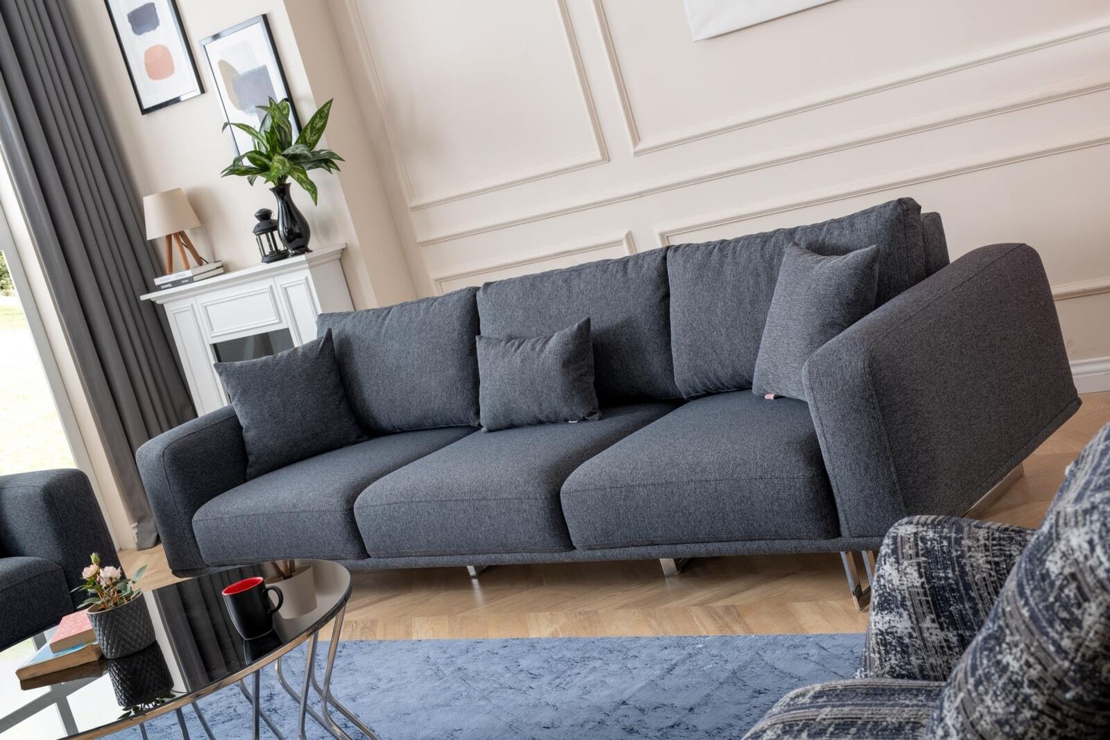 D'Sëtzhéicht vun 42 cm an d'Sëtzdéift vun 64 cm si perfekt fir eng relaxed Sëtzpositioun. De Canapé-Set ass ideal fir verschidde Liewensstilscenarien – egal ob Dir e Buch liest, e Film kuckt oder einfach nëmmen entspaant, dëse Set confirméiere fir exzellent Komfort. De modernen Design passt sech liicht un all Interieur un, vun engem klasseschen bis hin zu engem modernen Setting. Domain einfacht Matenaner vun Design a Funktionalitéit maacht dëst Set eng optimal Wahl fir déi, déi no Qualitéit a Stil sichen.