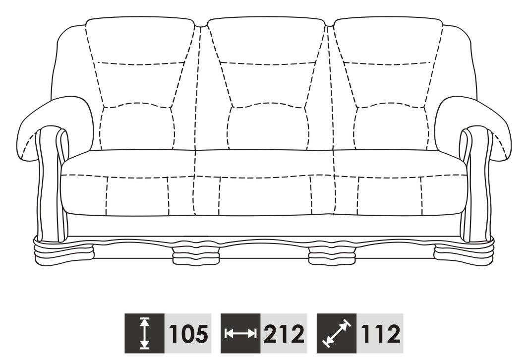 3 Sëtzer:    ca. 212 x 105 x 112 cm