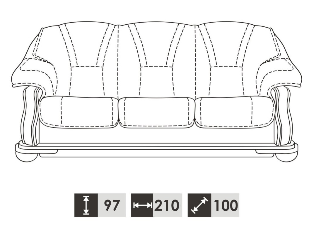 3 Sëtzer:   ca. 210 x 97 x 100 cm