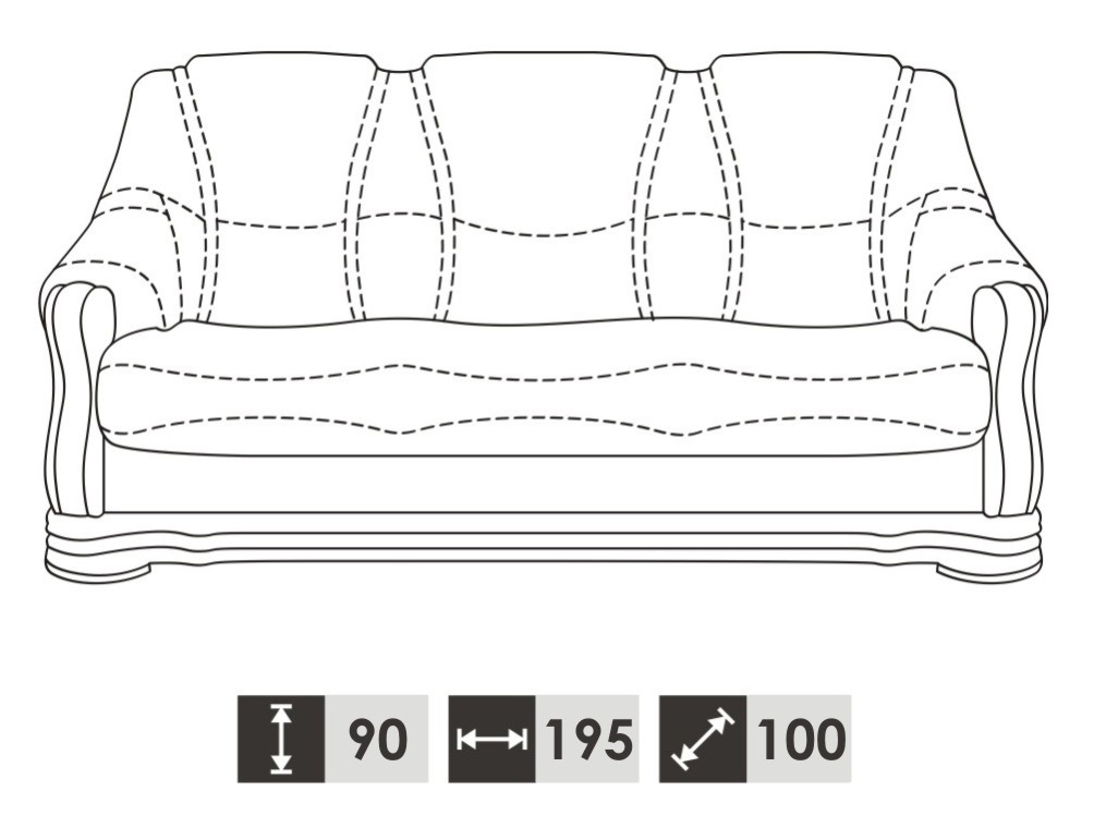 3 Sëtzer:   ca. 195 x 90 x 100 cm
