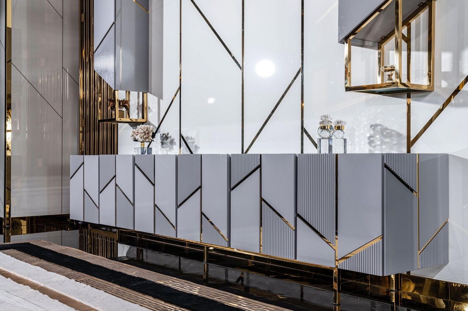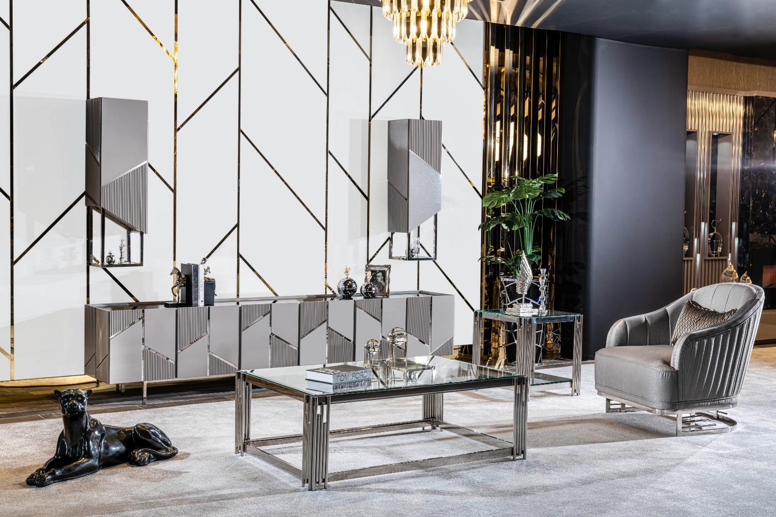 Den 'TV-Stänner+2x Regal Säitendësch RTV Lowboard Wunnzëmmer Holz Modern Nei' ass eng perfekt Ergänzung fir all modernen Wunnzëmmer. Mat enger Gesamtlängt vu ca. 260 cm, enger Héicht vu ca. 50 cm, an enger Breet vu ca. 60 cm, bitt dëse Stänner genuch Plaz fir Ären Fernseh an zousätzlech Dekoratiounsartikelen oder Entertainment-Equipement. De Modell ass aus héichqualitativem Holz a Metall gemaach, wat net nëmmen eng robust Struktur garantéiert, mee och e stilvollen a moderne Look an Äert Heem bréngt. D'Faarf entsprécht präzis der Abildung, wat Iech erlaabt, dëse Stéck einfach an d'Ambiance vun Ärem Raum z'integréieren.