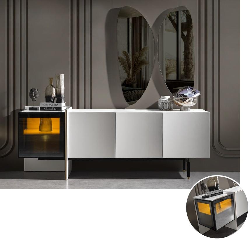 Modern Wohnzëmmer Kredenz Spigel Holz Miwwelen Luxus Stil Modern 2 Stécker nei