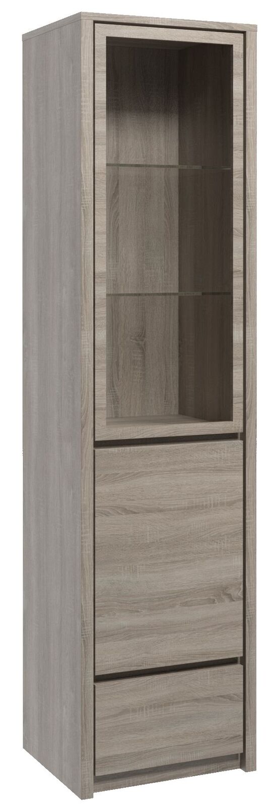 D'Vitrine ass méi wéi just e Miwwelstéck, et ass och e praktesche Raumseparateur oder als Deel vun enger méi grousser Möbelkonstellatioun unzepassen. Dank der banneschter Struktur aus richtegem Holz, bitt et haltbaren an zouverléissegen Stauraum. Perfekt fir déi, déi hir Dekorstiil mat Funktionalitéit wëllen verbannen, dëse Glasschaf mécht net nëmmen en estheteschen Androck, mee erhéicht och de Komfort duerch sengen déiwen an gutt-plangten Regaler. Mat senger héijer Qualitéit a raffinéiertem Design ass et eng Investitioun an Är Heem, déi Iech a Joren an Zäiten déi néideg Iwwersiicht an Usprochwäert gëtt.