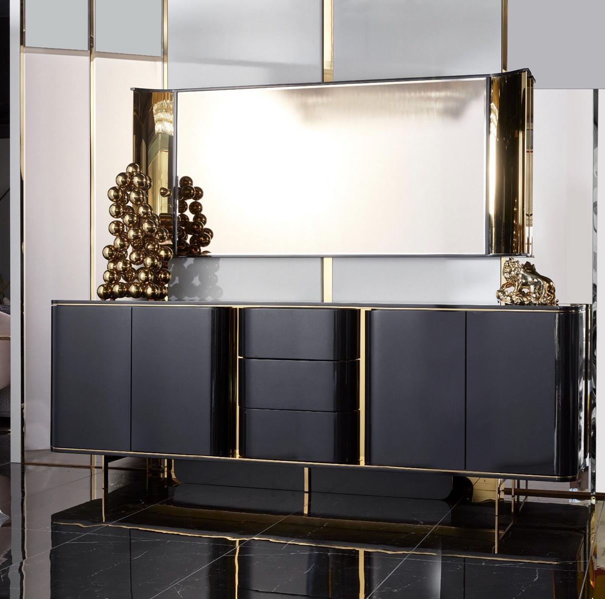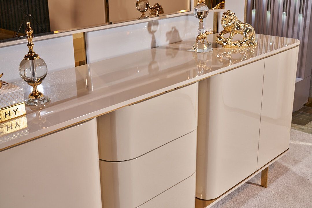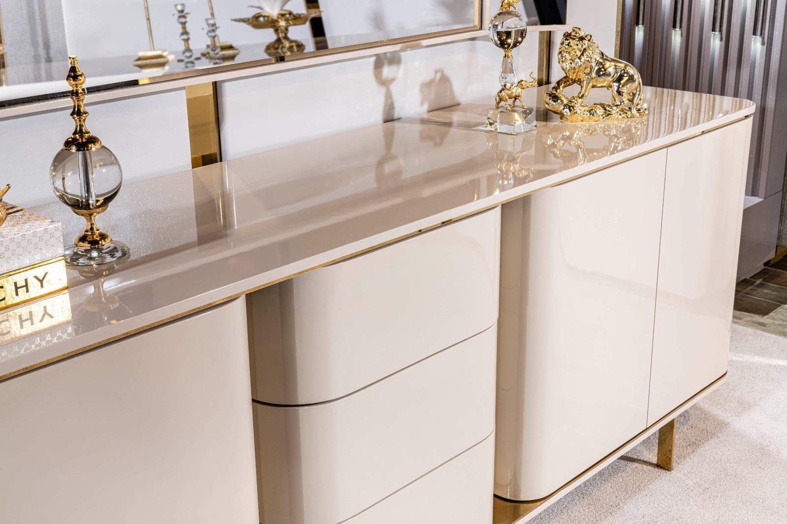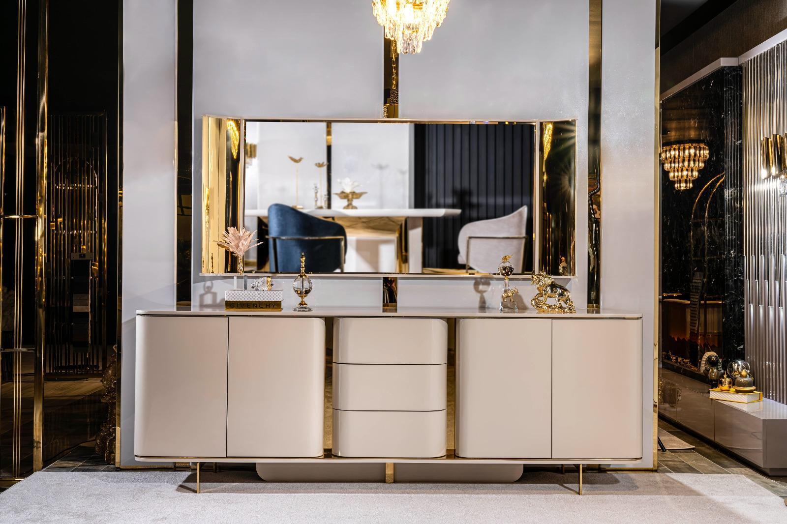 Wunnzëmmer Kommoud Spigel Material Holz mat Metall Stil Modern Béiž