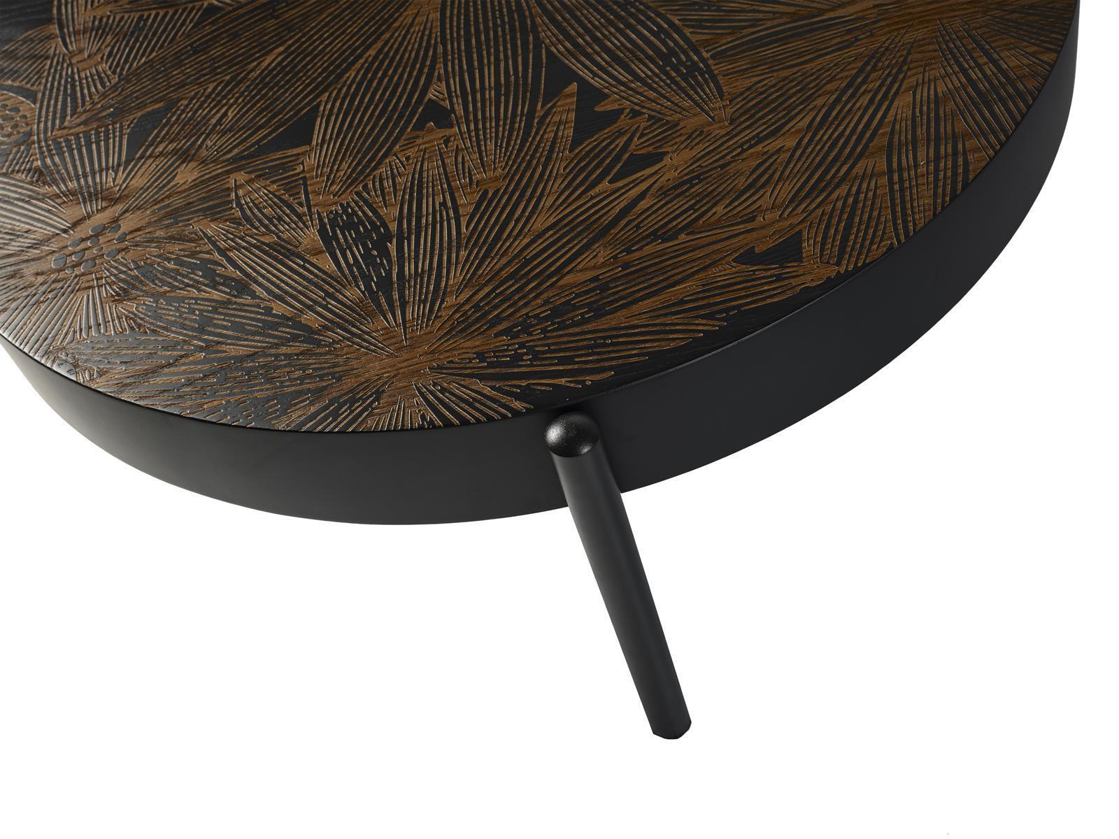 De Couchtisch ass an enger faarwerfrëscher Design wéi ofgebilt, deen sech nahtlos integréiert an déi modern oder traditionsräich Ariichtung ergänzt. Dank senger stabiler Struktur a senger ästhetescher Optrëtt, kann dësen Tisch souwuel als Niewendësch oder als zentralen Mëttelelement genotzt ginn, fir Zäitschrëften, Diffusere oder Décoratiounsartikelen ofzestellen. Benotzt den Tisch, fir Är Gäscht beim Aperitif z'empfänken oder eng entspaanend Owesstonn mat enger Téitaass ze genéissen. En ass déi perfekt Wahl fir funktionell Eleganz an Äert Doheem ze bréngen.