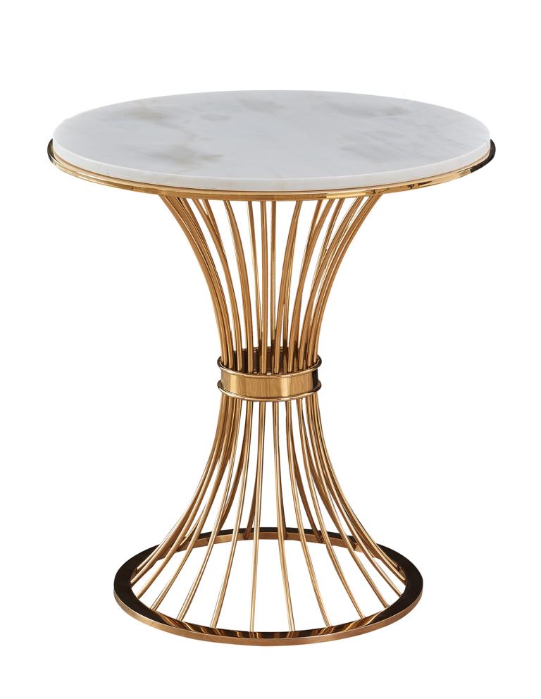 De 'Ronnenge Beistelltësch Couchtisch Schlofzëmmer Kommode Dëscher Konsol' ass en elegante Miwwelstéck dat a jiddwer Interieur opfält. Mat sengen Maßen vun ongeféier 46,8 cm Längt, 54 cm Héicht an 46,8 cm Déift, bitt dësen Dësch genuch Plaz fir Stil a Funktionalitéit an engem harmonesche Ganzen ze verbannen. De Materialmix aus engem Aarbechtsplack aus Marmor Imitatioun a Been aus Stol suergt fir eng robust a gläichzäiteg raffinéiert Erscheinung. Dësen Dësch passt perfekt an all Raum a bréngt e modernen a stilvollen Touch mat sech.